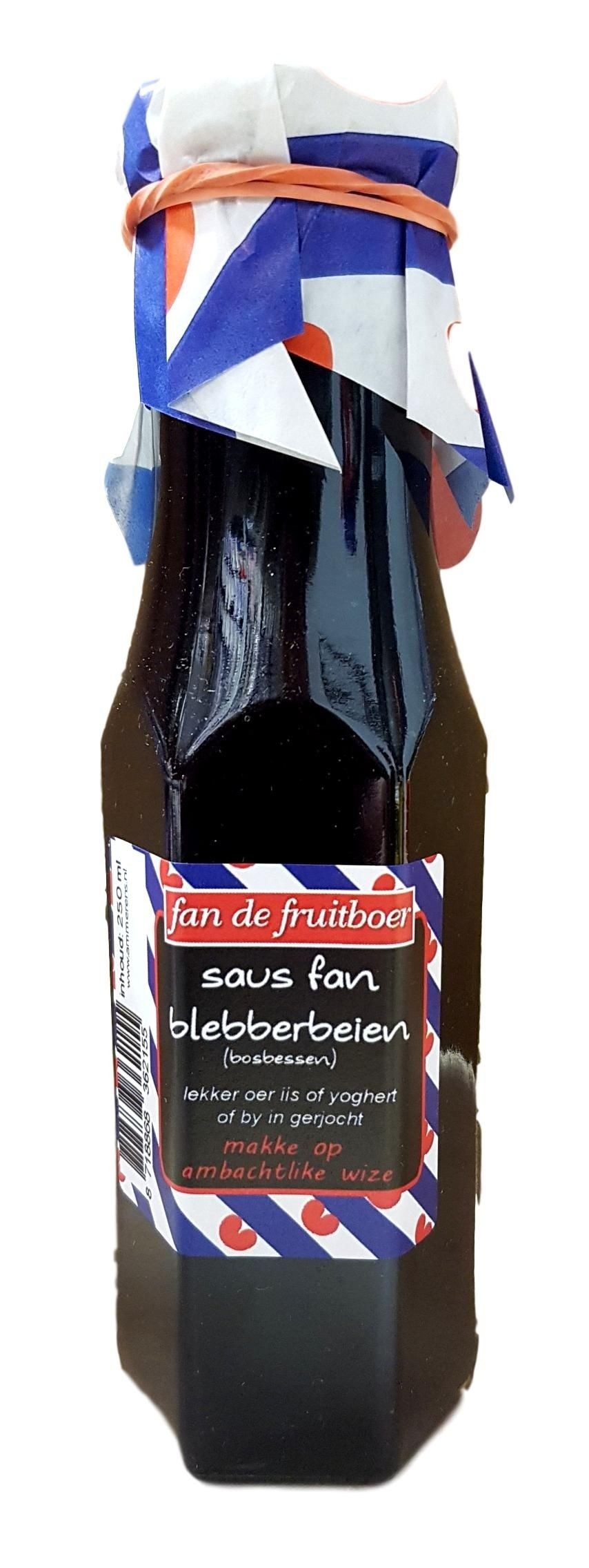 Friese bosbessensaus (blebberbeien). Heerlijk over yoghurt of ijs, gemaakt op ambachtelijke wijze. Inhoud 250 ml.