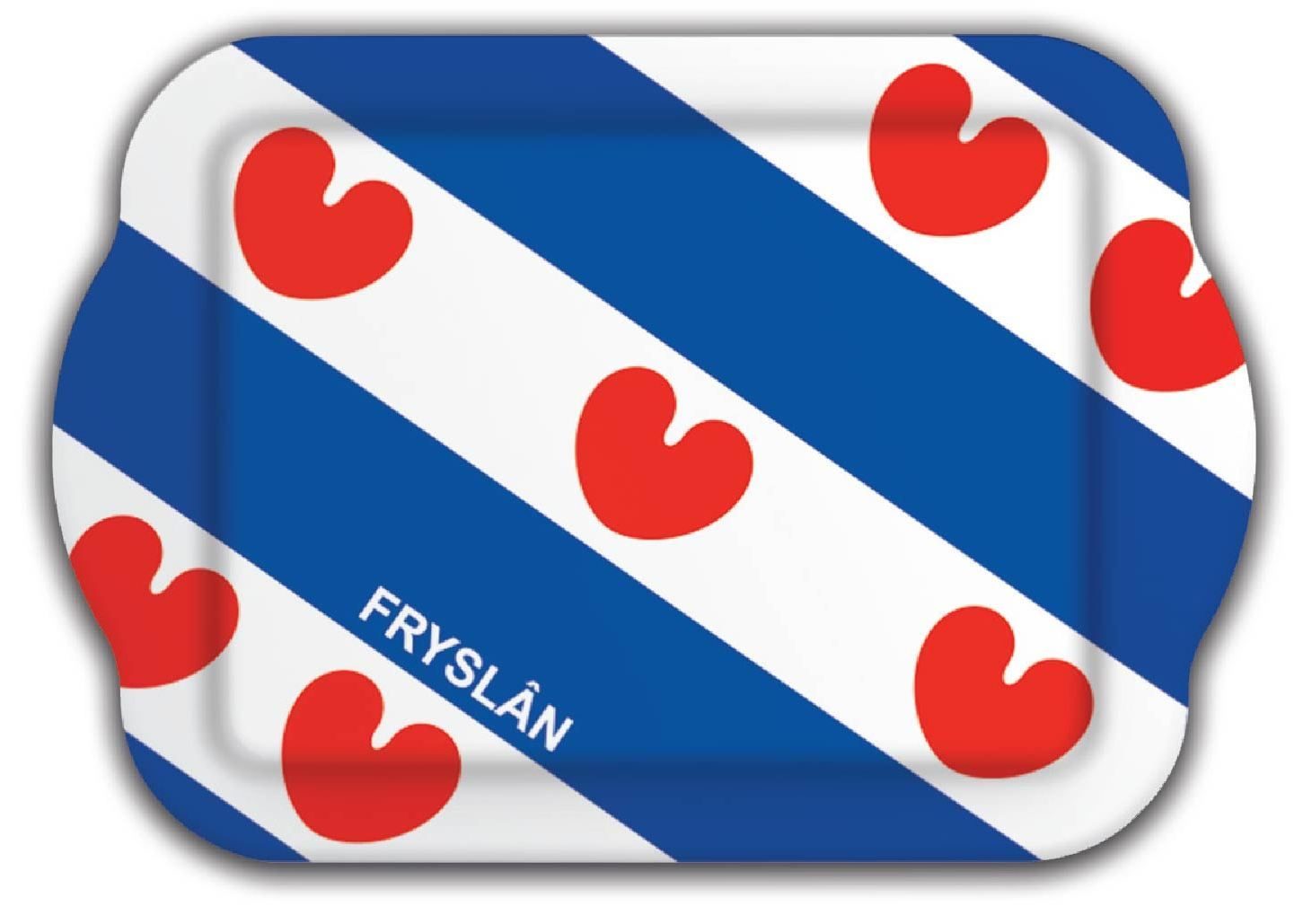 Fries dienblad met de Friese vlag, 21 x 14 centimeter. Erg leuk om kado te geven met bijvoorbeeld 1 of 2 Friese mokjes of kopjes of te combineren met Friese suikerzakjes en een kopje. Zo nee m je heel handig even snel 2 kopjes thee of koffie mee.