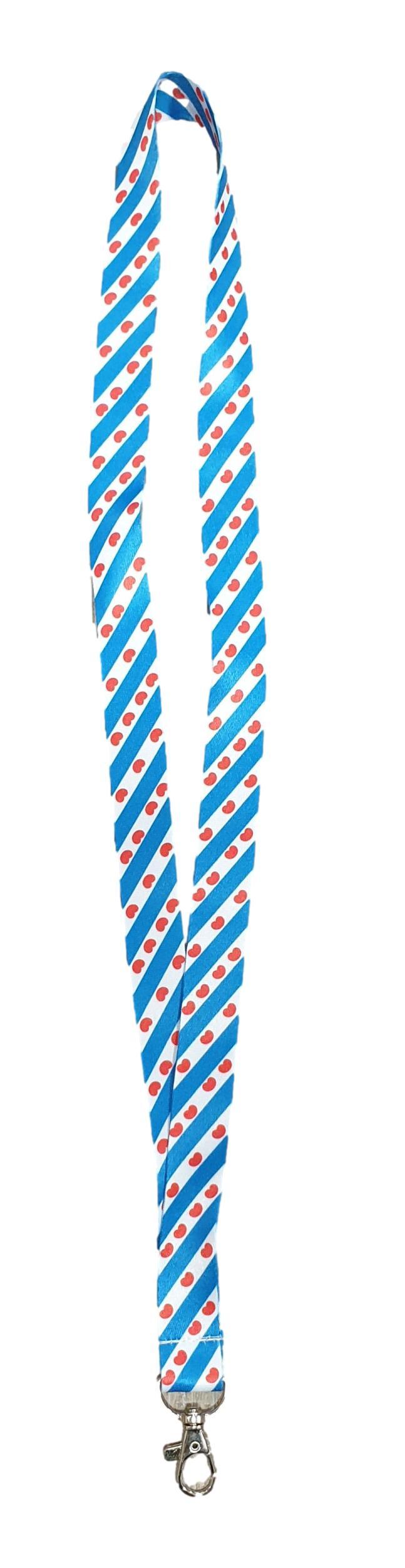 Een Friese keycord (ook wel sleutelkoord of lanyard) is een neklint dat wordt gebruikt om bijvoorbeeld sleutels,of een mp3-speler aan vast te maken en zo rond de nek te dragen. Deze Friese keycord met karabijnhaakje is een leuk kadootje voor een klein prijsje.