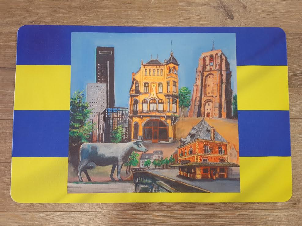 Erg mooi, deze mat met de Leeuwarder kleuren en de afbeelding van diverse Leeuwarder gebouwen zoals de Oldehove, de Waag, de achmeatoren maar ook Us Mem en de Centraal Apotheek ontbreken niet. Deze mat is uitermate geschikt voor meerdere doeleinden. Hij kan omdat hij antislip is en water absorberend gebruikt worden als douchemat (ook leuk voor als douchemat in de caravan) maar klanten vinden deze ook erg mooi als bureaulegger, afwasmat, placemat of gewoon voor aan de muur. Uitwasbaar op 40 graden. 100% polyester.