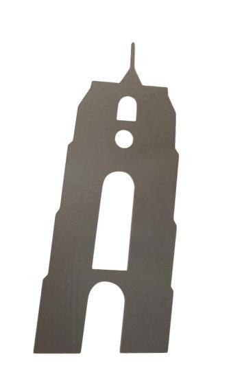 Sticker van de Oldehove, voor bijvoorbeeld achterop de auto of caravan. Deze Oldehovesticker is verkrijgbaar is in zilverkleur en is 12 cm hoog en 5,3cm breed. Gemakkelijk te plakken vanwege de applicatie.