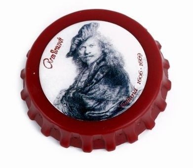 Magnetische flesopener (rood) met zelfportret van Rembrandt van Rijn