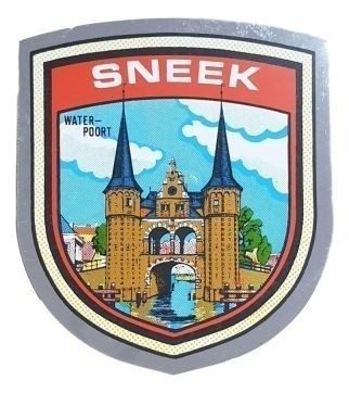 Sticker Sneker Waterpoort. Ideaal als autosticker. met mooie zilveren rand.