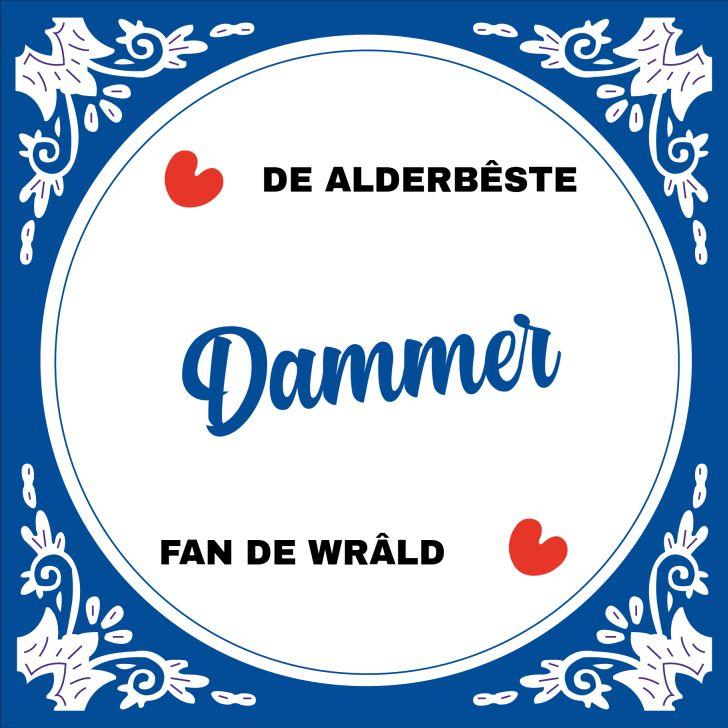 Tegel voor aan de muur, voor de alderbêste dammer fan de wrâld. Deze tegeltjes zijn leuk om te geven aan de grootste fan van dammen en worden erg gewaardeerd om te krijgen. Ook verkrijgbaar als mok en ook een mooi shirt is verkrijgbaar.