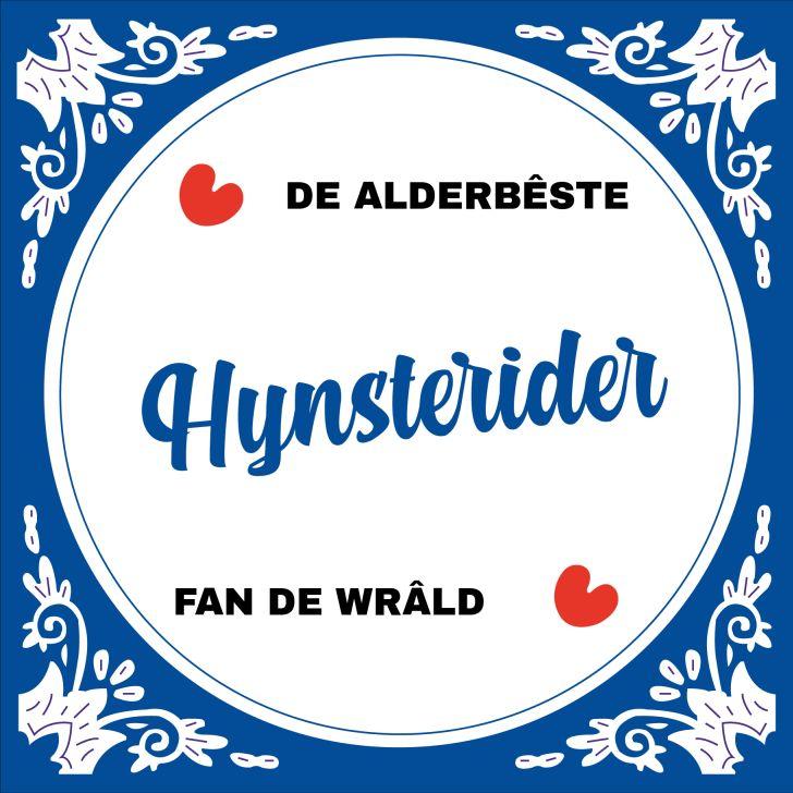 Tegel voor aan de muur, voor de alderbêste hynsterider fan de wrâld. Deze tegeltjes zijn leuk om te geven en worden erg gewaardeerd om te krijgen. Ook verkrijgbaar als mok en ook een mooi shirt is verkrijgbaar.