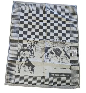 Mooie theedoek met boerderij en koeien. Deze luxe theedoek is 50 x70 cm, 100% katoen. Er is ook een bijpassende keukendoek met deze print.