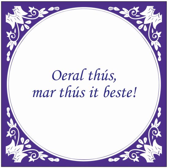 Op deze tekst staat de Friese spreuk: Oeral thús, mar thús it beste! (=Overal thuis, maar thuis het beste!)